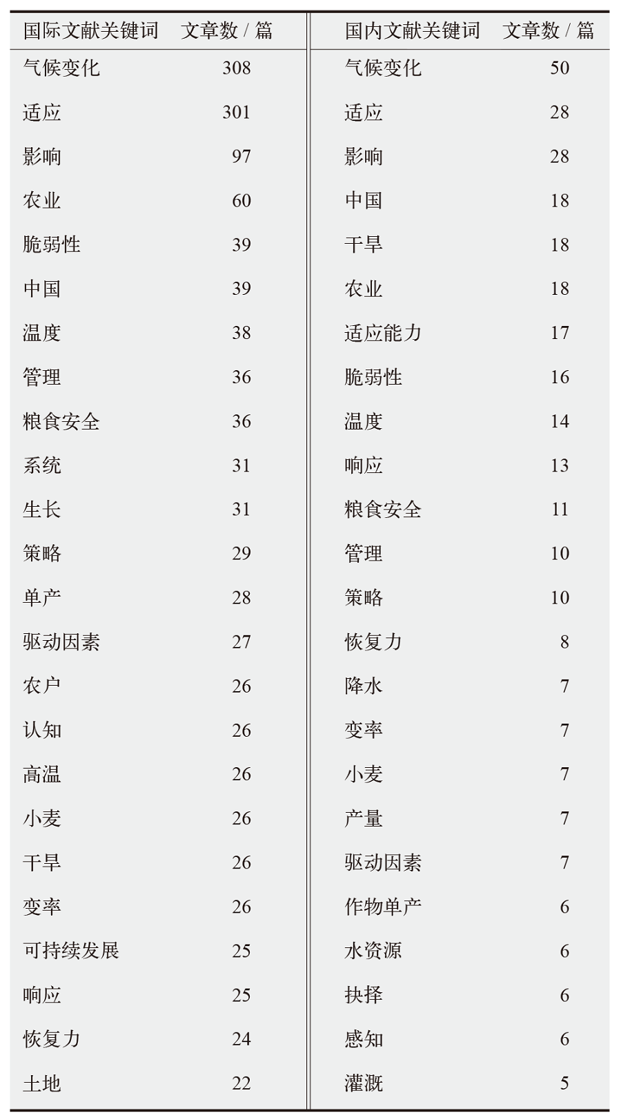 表1 国际和国内农业适应能力文献关键词共现分析