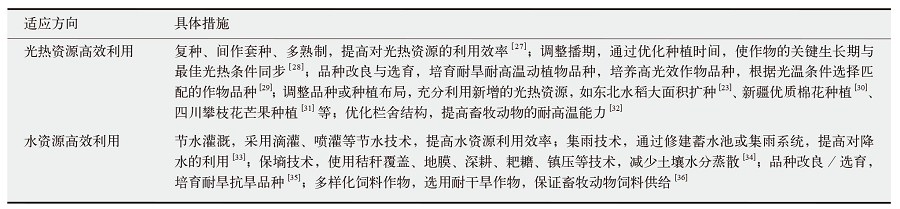 表2 提高气候资源利用效率的主要适应措施
