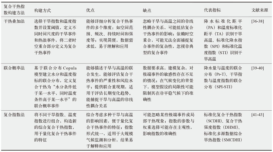 当前主要的复合干热指标构建方法包括干热叠加法、联合概率法和复合指数法[36