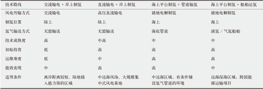 1 海上风电制氢技术对比分析
