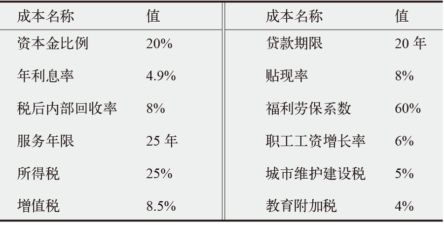 表2 初始投资成本基本参数