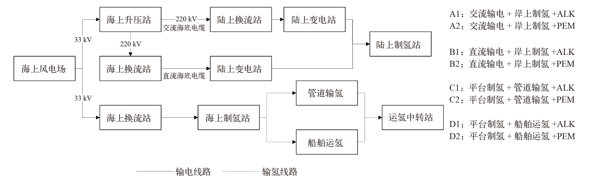 | Fig. 1 Topology of offshore wind hydrogen production technology schemes |