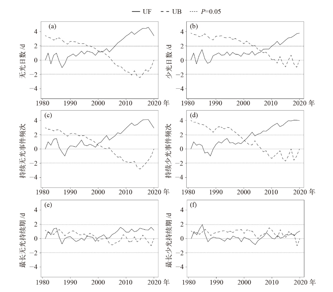 | Fig. 2 MK mutation test results of solar drought events in China from 1981 to 2020 |