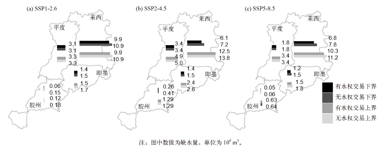 | 图5 不同机制下各县区的缺水量 注:图中数值为缺水量,单位为106 m3。 |