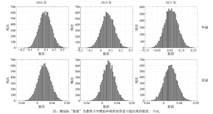 注:横坐标“数值”为蒙特卡罗模拟中碳排放强度可能出现的数值,下同。