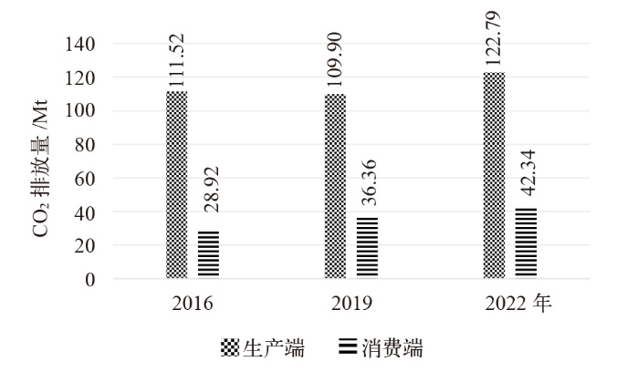 | 图1 2016、2019和2022年全球可再生能源发电部门在生产端和消费端的碳排放情况 |