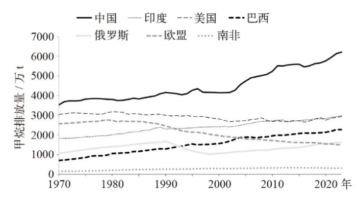 1970—2023年全球主要国家甲烷排放情况