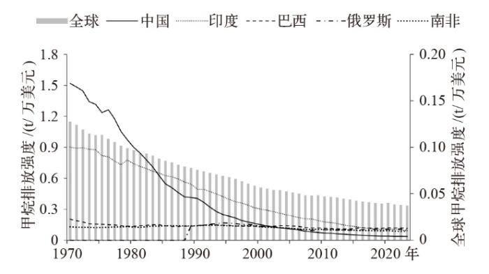 1970—2023年金砖五国甲烷排放强度
