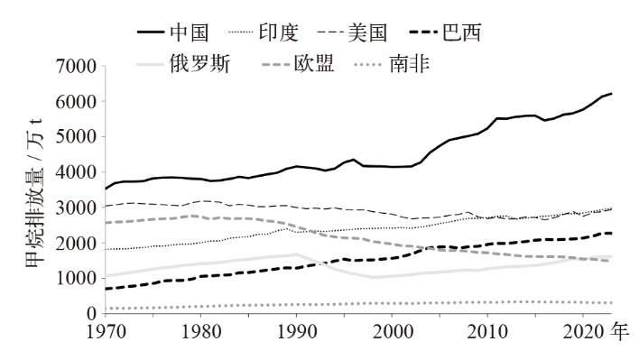 | 图2 1970—2023年全球主要国家甲烷排放情况 |