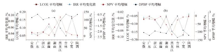 绿证价格提高(a)和减少(b) 10%后经济指标变化