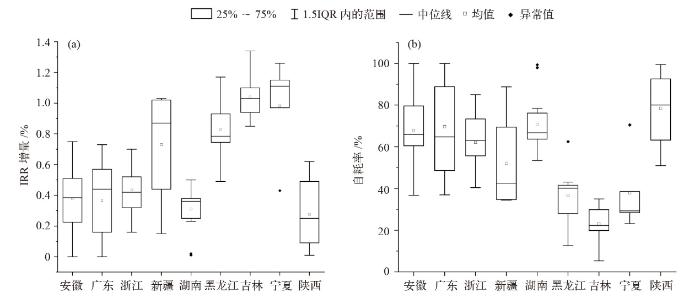 绿证实施后居民建筑IRR增量(a)及与自耗率关系(b)